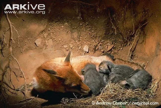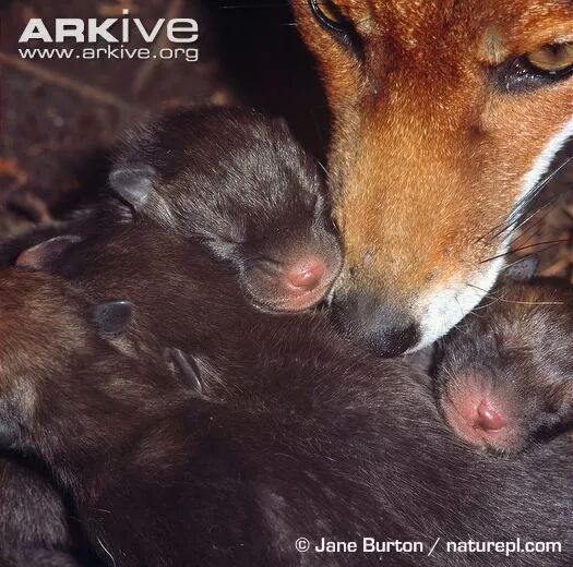 怀孕两个月,母赤狐就会生下幼崽,一次可以生3~7只,刚出生的幼崽是灰黑色的。放心,这没生错。
