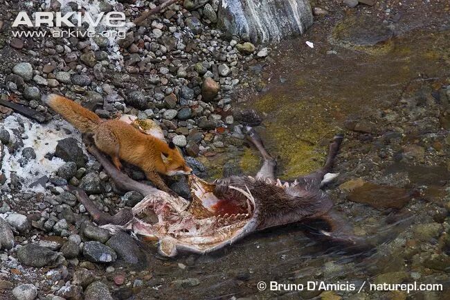 虽然赤狐可以游泳,但也只能捡漏吃点搁浅的鱼,真正下水捕鱼对于赤狐来说过于科幻了。而大型猎物虽然不是赤狐的菜,但是尸体绝对是不能错过的: