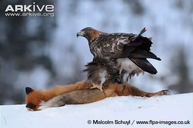 除了我们可以捕食谁和如何捕食谁,谁会捕食我们以及如何保持警惕、如何逃跑,也是妈妈要教会孩子的重要内容。下图的赤狐被金雕捕食,我们也完全有可能成为一些更大的猛兽的食物。