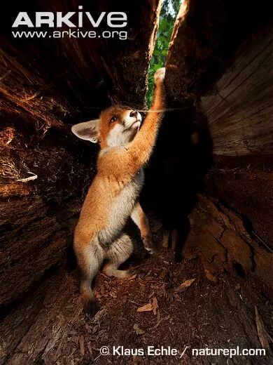 赤狐很有好奇心,这位正在探索空树干。图片:Klaus Echle / naturepl.com