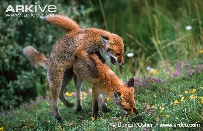 追跑打闹大概是这阶段的小狐狸除了等妈妈叼回肉来之外最喜欢做的事情了。在这过程中,它们也获得了更强壮的身体、更出众的运动能力,并且开始初步掌握一些扑咬的技巧。