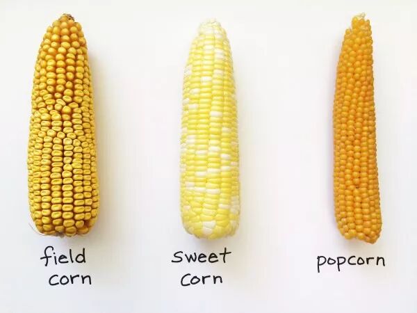 左边是中式爆米花常用的普通玉米,中间是又嫩又甜的水果玉米,而右边是西式爆米花常用的另一种玉米。图片:straykernels.wordpress.com