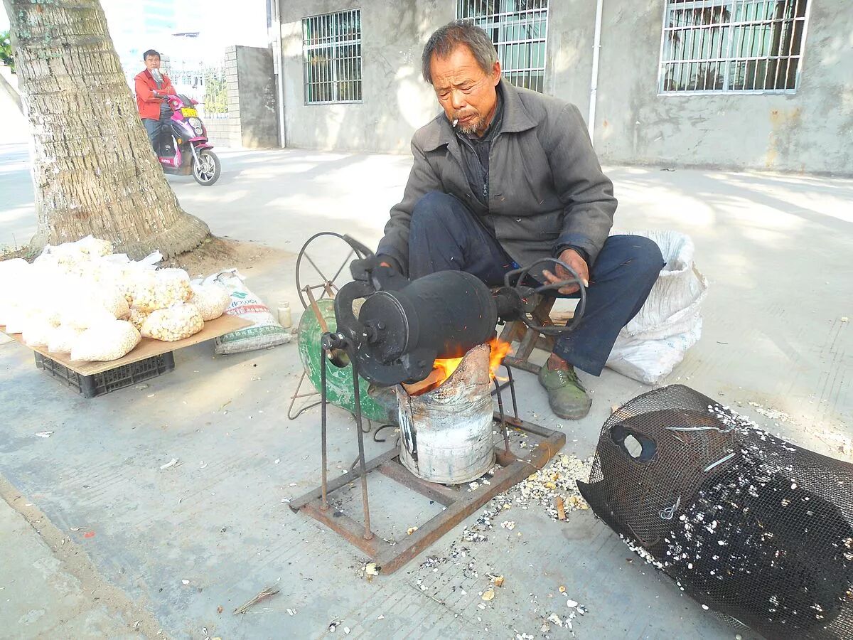 70年代出生的许多人,童年记忆中大概都会有爆米花的深深印迹:一个瘦削中老年男子,背着一个葫芦形的“爆花机”走村串户。在某个稍微宽敞的院子架起柴火,把玉米放进那个满身黢黑的容器中,往往还会加入一点糖精,然后扣紧盖子,放在火上摇动。