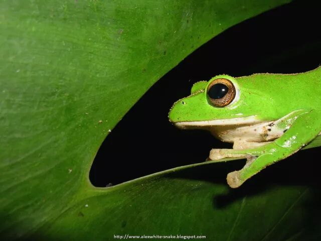 莫氏树蛙的雄性个头比雌性小很多,雄蛙靠嘹亮的鸣叫来吸引雌性。我们一年四季都能欣赏到莫氏树蛙的歌喉呢。