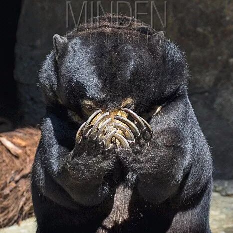马来熊的这副好牙口和长长的舌头,应该是它们对所喜爱的食物的一种适应。昆虫和水果是马来熊的主食,其中蜂类富含蛋白的幼虫和高热量的蜂蜜又是它们的最爱,以至于它们别名“蜜熊”。