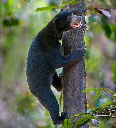 中南半岛的热带季风雨林、马来半岛和巽[xùn]他群岛的热带雨林是马来熊生活的天堂。它们前肢强壮,前脚向内撇,胸腹平坦,脚掌裸露无毛,还有着前文提到的大爪子,这些都是适合爬树的身体特征。