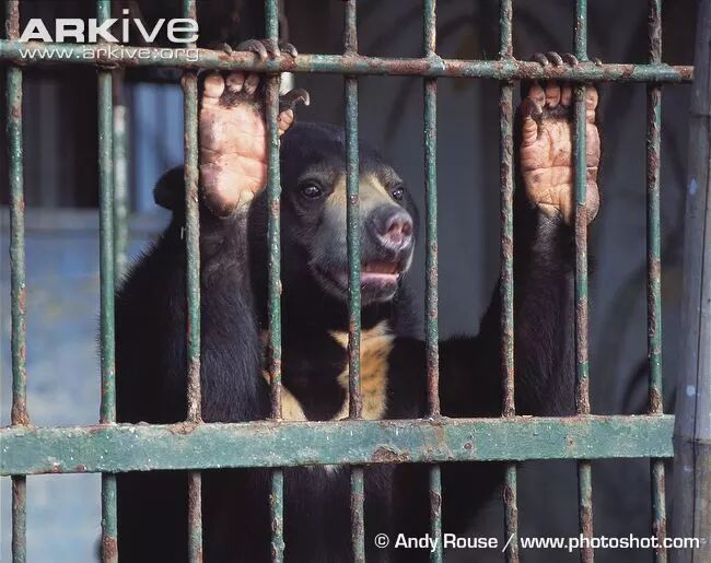 笼中的马来熊。图片: Andy Rouse / photoshot.com