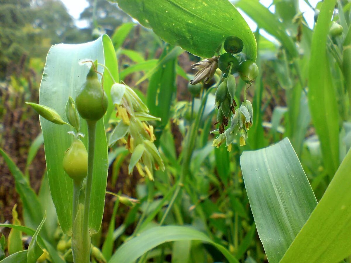 薏米作为禾本科下薏苡属中唯一经常被吃的一个物种,可以长到一两米高,叶子下面圆上面尖,花朵长在植株的上部。