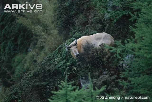 羚牛还有一个特点,就是一身飘逸的长毛。很多时候,我们会见到所谓的“金毛羚牛”,通体金黄,只有裸露的鼻子有一片黑,这是羚牛秦岭亚种,分布在陕西秦岭地区。