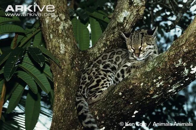 不难想象,长尾虎猫只居住在森林中,从紧邻墨西哥高原的阔叶林到亚马逊流域的热带雨林,再到中南美安第斯山麓的云雾森林,或者是沼泽湿地中的河岸树丛,能上树的地方都是长尾虎猫的适宜生境。