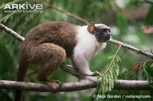 黑白花狨(pied tamarin)是亚马逊雨林深处的一种濒危灵长类,据报道长尾虎猫模仿的是其幼崽的叫声。图片:Nick Gordon / naturepl.com