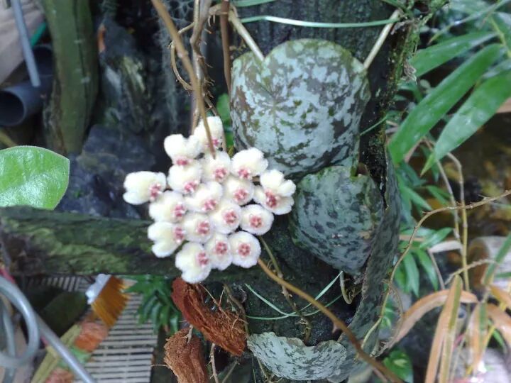 心叶球兰的花。https://upload.wikimedia.org/wikipedia/commons/b/b2/Hoya-kerrii_flowers_op.jpg
