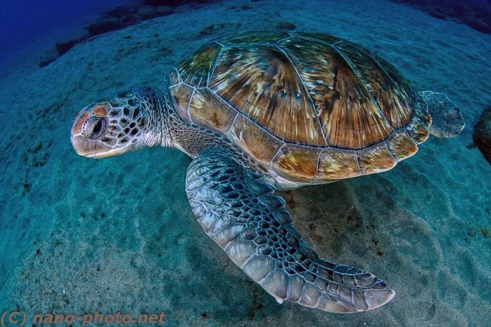 闲游的绿蠵龟,俗称绿海龟。图片:nano-photo.net