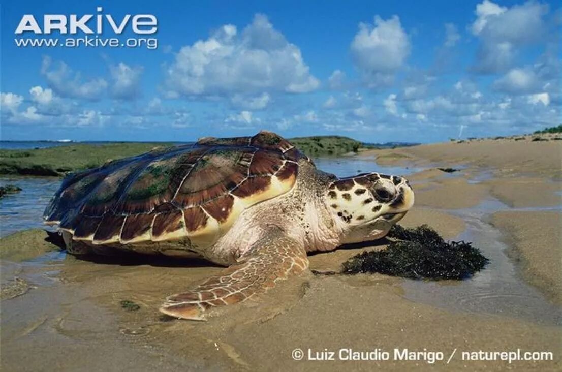 趴在海滩上的蠵龟。图片:Luiz Claudio Marigo / naturepl.com