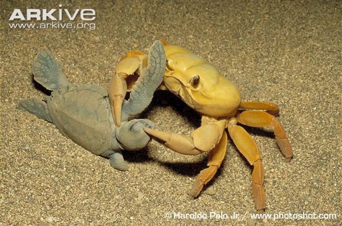 一只陆蟹喜获一只小绿蠵龟。图片:Haroldo Palo Jr / photoshot.com