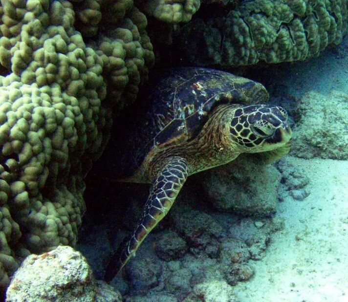 躲在礁石中休息的海龟。图片:Brocken Inaglory / wikipedia