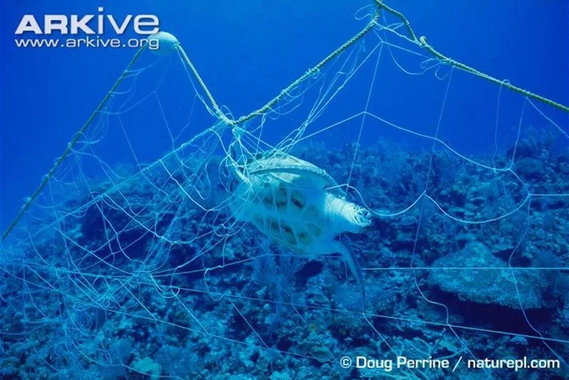 一只被流刺网缠住的绿蠵龟。图片:Doug Perrine / naturepl.com