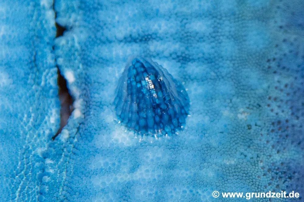 伪装在蓝指海星表面的水晶瓷笠螺。图片:grundzeit.de