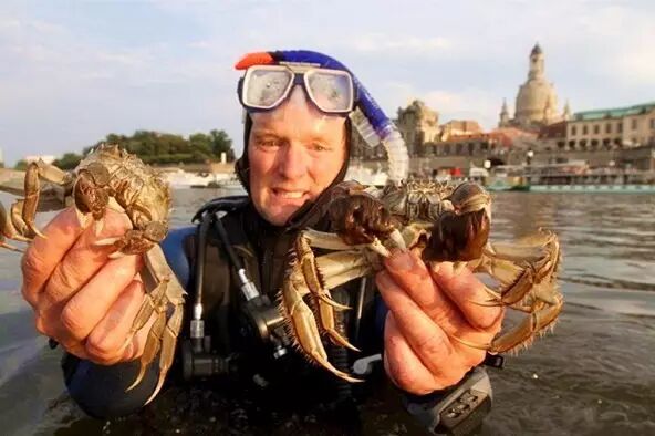 上世纪初,大闸蟹随着贸易货船压舱水侵入欧洲,短短几十年间已经遍布泰晤士河、莱茵河等欧洲水系,繁殖迅速,泛滥成灾;而那时中国本土的大闸蟹自然资源因大兴水利和过渡捕捞已经严重萎缩,九十年代末也曾有机构尝试引进野生德国莱茵河大闸蟹,最终还是因为食用价值太低不了了之。