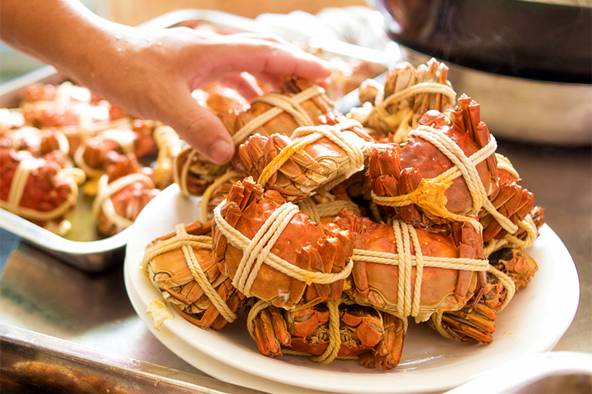自古烹蟹的方法虽然很多,但多强调清淡,尊重自然本色。食蟹而不失原味的唯一方法是放在笼屉里整只的蒸,不加盐醋而五味全。在清初著名文人李渔笔下,河蟹几乎是天下第一美味:“世间好物,利在孤行。蟹之鲜而肥,甘而腻,白似玉而黄似金,已造色香味三者之至极,更无一物可以上之。”