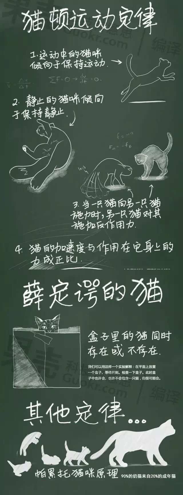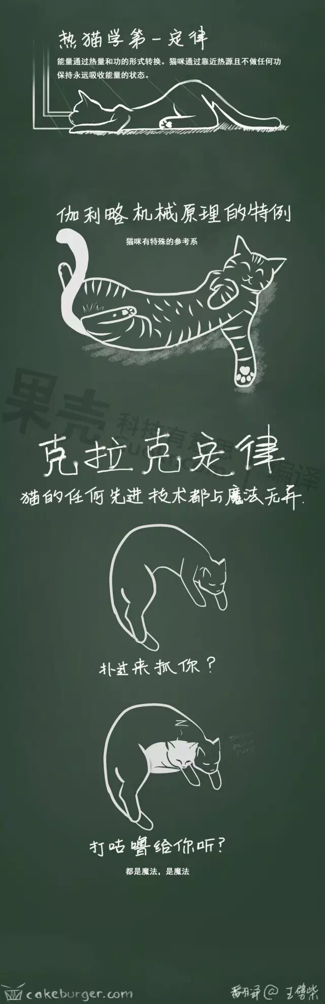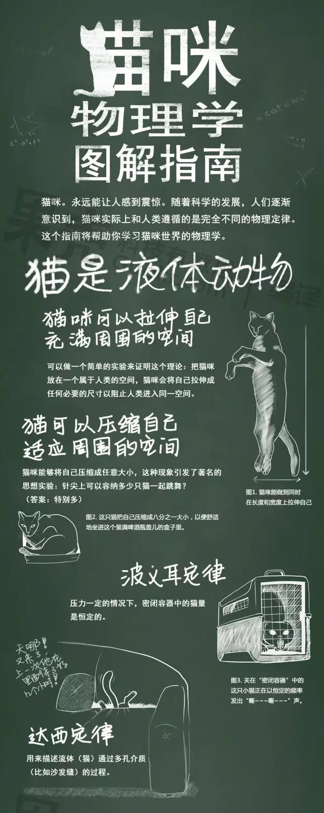 或许真相正如微博网友@OSAMA-Z 所言——“猫在挠你的时候是固体,午睡及穿越窄小缝隙的时候是液体,粘稠度与缝隙平均宽度成反比。在你试图抱猫的时候呈现出非牛顿流体特性。但是猫本身的构成物质不具有以上物理特性,是当代物理一大未解之谜。”