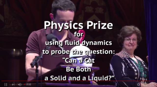 没错,2017年搞笑诺贝尔奖的物理学奖,就颁发给了来自法国里昂大学的研究者Marc-Antoine Fardin,他的通过流变学中的“底波拉数”来证明了“猫既可以是固体,又可以是液体”的理论,这可真的是科学吸猫了!