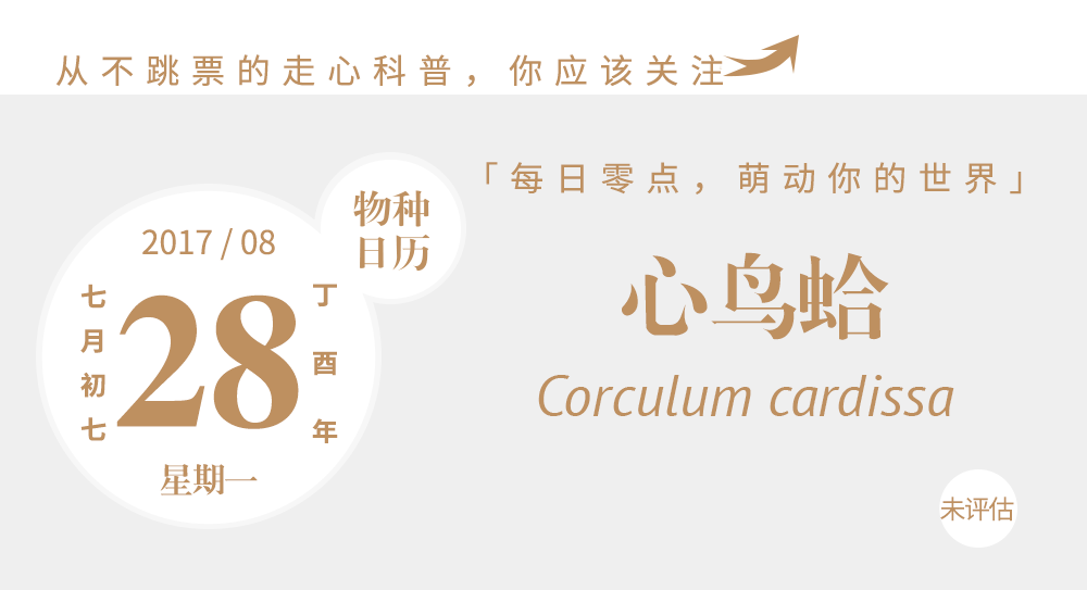 日历娘之前介绍过的贝类,多数可用奇形怪状来形容,比如密恐不友好的玉兔螺、旋梯状的绮蛳螺、满身长刺的栉棘骨螺等等,今天的心鸟蛤也不例外。