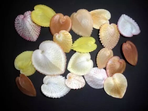 心鸟蛤的表壳有很多色号,比如黄色、紫色、白色或粉红色等,此外还有混搭的、带有不规则花纹的。因为特殊的形状,这种贝壳常被加工为精美且带有爱意的饰品,这里我推荐大家不妨偷偷收藏那么一颗。没有对象的,可以应对突如其来的恋情;有对象的嘛,也可以拿来应付措手不及的节日。