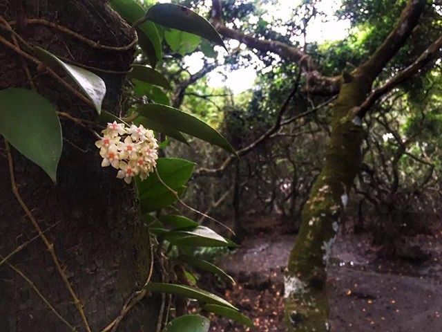 除了能在花市中见到球兰,你还能在我国南方诸省如福建、两广、云南、海南和台湾的深山密林中发现它们的身影。许多年前,我就在鼓浪屿的一处残垣上,偶遇一蔓球兰,像一张绿毯,将斑驳的墙面紧紧包围,就像是用生命在墙上作画。而东南亚则是球兰物种多样性的热点地带,终年潮湿而温暖的气候为球兰提供了最适生长条件,在泰国就随处可见球兰、眼树莲和热带兰花等植物被培植在行道树上。