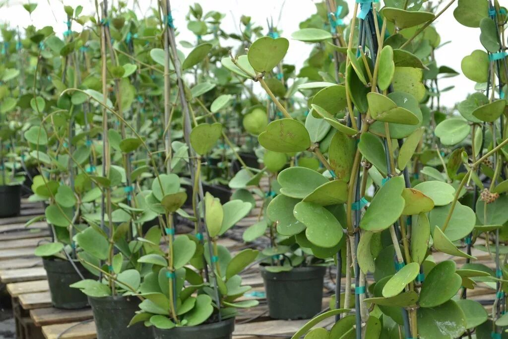 家庭养护时,你可以选择把它们悬挂在高处,让它们自然下垂生长,久而久之球兰就会回赠你一条垂瀑。如果给球兰搭个架子,它们就能顺势攀爬,架子的形状随你来定;如果你给它们一个拗成心形的铁架,那么它们就会生长成为一颗绿色的爱心。等到花期来了,花架就会挂上粉红色的花朵,一时间香气四溢,别提多有成就感了。