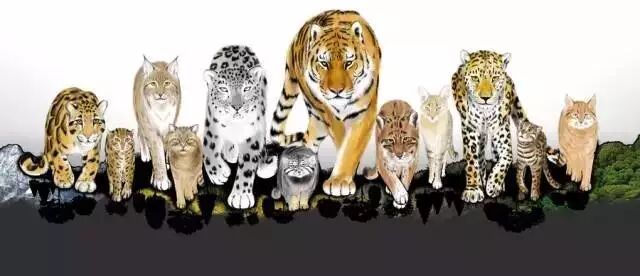 过去公认的全球野生猫科物种为37种,现在,“猫科分类特遣队”(the Cat Classification Task Force,CCTF)将全世界的猫科动物重新修订为41种(含家猫)、77个亚种。图片:catsg.org