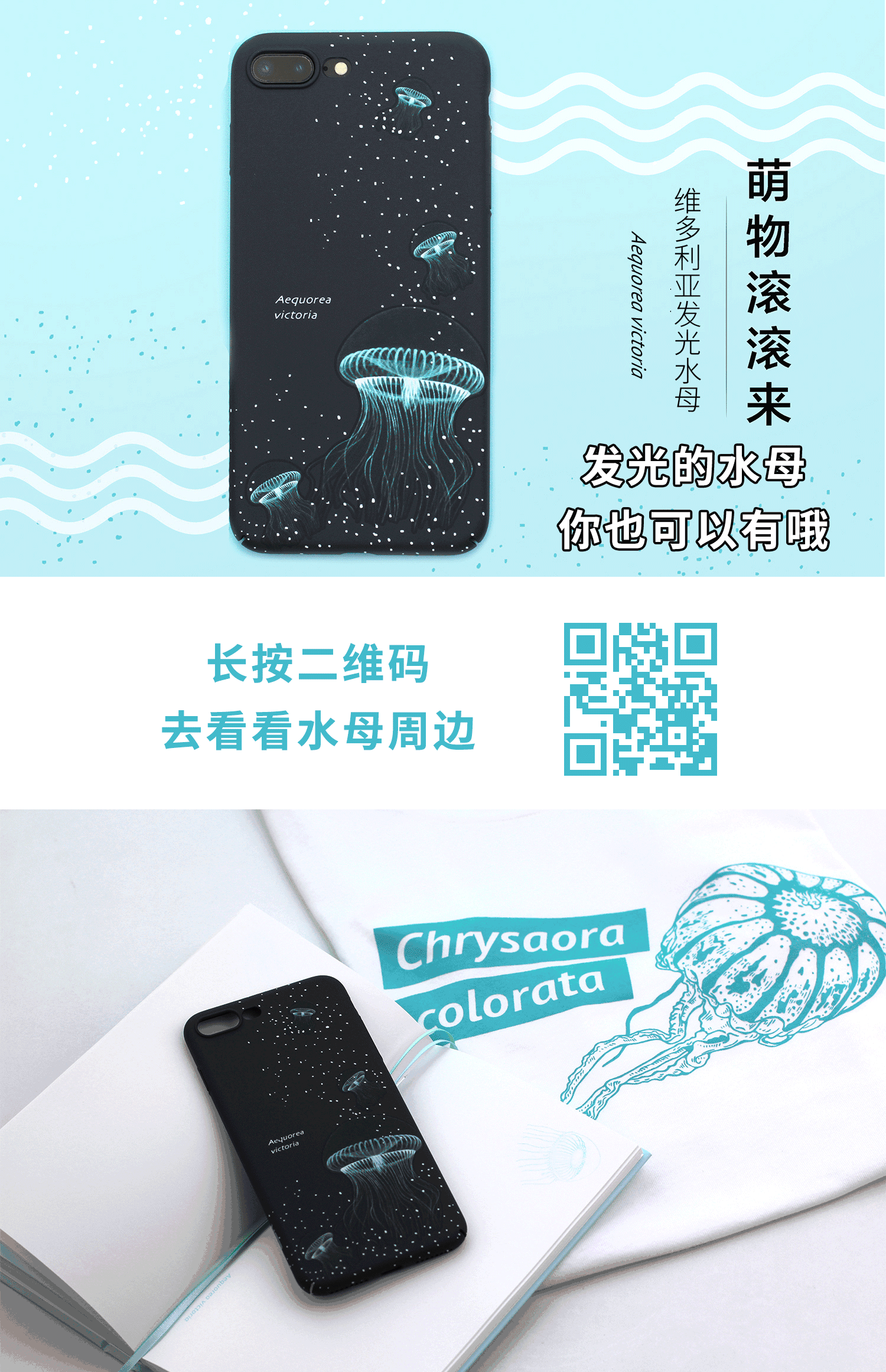 把维多利亚多管发光水母印在手机壳上