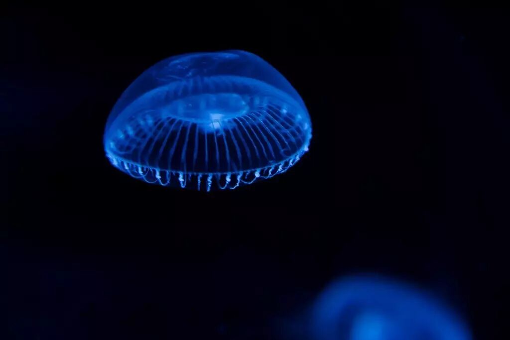 水族馆中我们经常能看见水母的身影,它们往往散发着各种异样光芒,但绝大部分都是灯光效果。这些被展示的水母,譬如最常见的海月水母,本身是不会发光的。