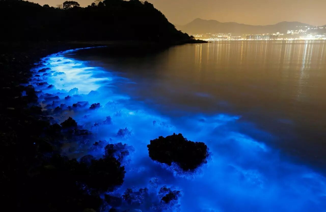 夜光藻造成的梦幻蓝色荧光海岸。图片:joindiaspora.com