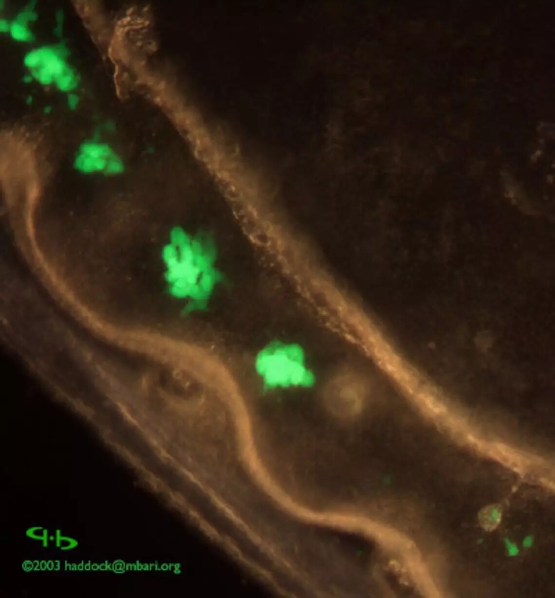 发出绿光的维多利亚多管水母。图片:igem.org
