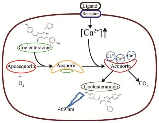 水母素是一种发光蛋白。当水母素和钙离子相结合就会变成氧化酶,催化不活跃的发光蛋白质复合物发生氧化反应,发出蓝色的荧光。这个发光蛋白在1962年被日本科学家下村脩(Osamu Shimomura)和美国科学家约翰逊(Frank H. Johnson)发现并提取纯化,提取出来的水母素在人工条件下加入Ca2+也是可以发出蓝色荧光的。