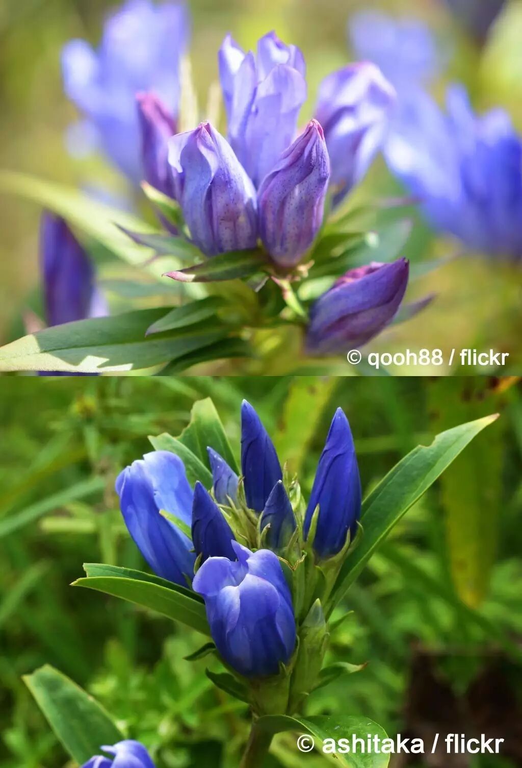 萼片开展的龙胆(上)及萼片直立的三花龙胆(下)。 图片来源见水印