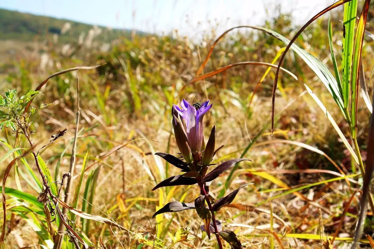 龙胆体型不大,最大的植株大概有半米高,矮的不过二三十厘米。它们拥有粗壮的根状茎,向下伸出肉质长根,其中含有的龙胆苦苷,味道极苦,不知道古人是不是因为这个叫它龙“胆”。它还有个日本别名叫疫病草,是因为日本古人认为它苦味的根是滋补灵药,可以治疗疫病。