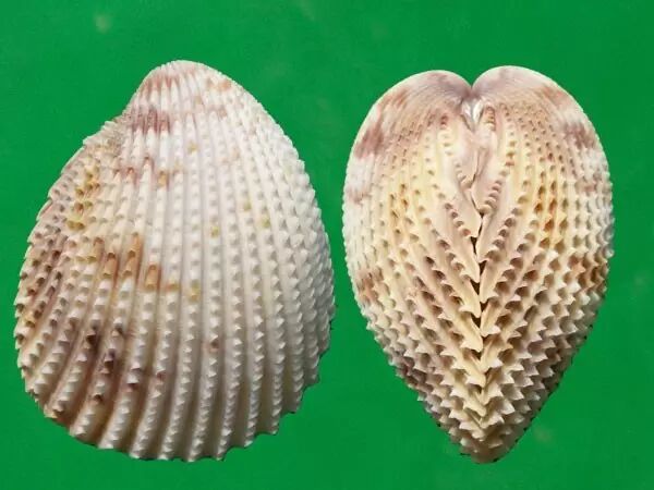 锒边鸟蛤Vepricardium coronatum(下图左)