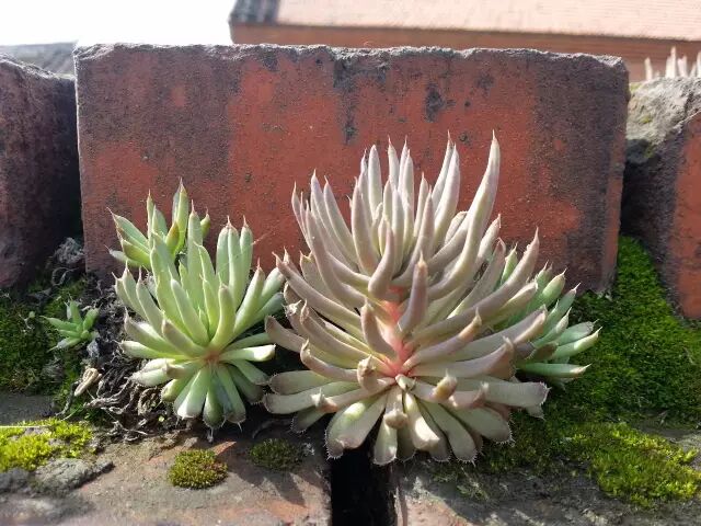 中国也有很多瓦松属的植物,常见如瓦松Orostachys fimbriatus,在南方,乡下老房子的瓦顶上,古镇水乡的街边墙缝中,在受人干扰比较小的地方,经常能发现它们的身影。