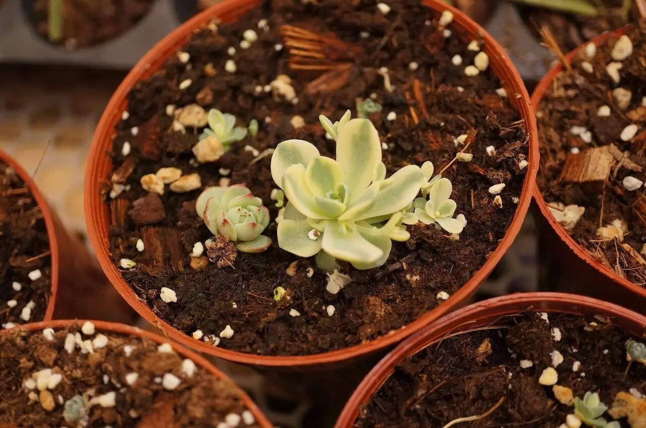 对于阳台党来说,最简易的繁殖办法就是扦插。子持莲华的走茎芽会在夏末秋初达到爆发式的生长状态,如果你种满了一盆,那么这些“小手”会密集到给你造成心理阴影。一般来说,走茎只要长时间接触地表,在一定的温湿度下,就能长出根系抓住土壤;当你把茎剪掉,就能得到一株“新”的子持莲华。