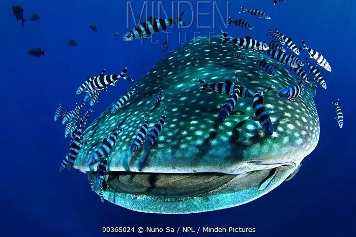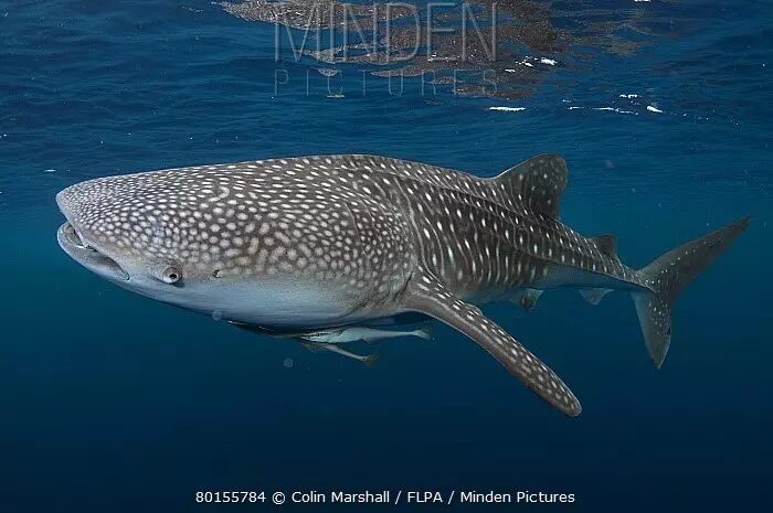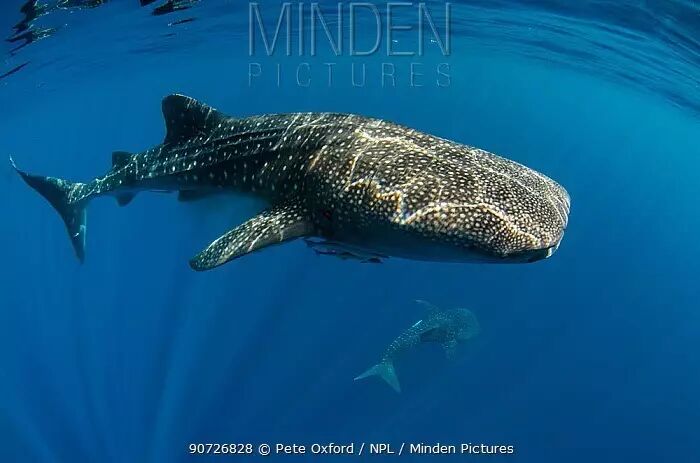 鲸鲨会在全球热带至温带海域之间季节性迁移,它们通常独来独往,但并不孤单——鲸鲨庞大的身躯如同大洋里的避风港,吸引和庇护着诸如䲟[yìn]鱼等小型鱼类。