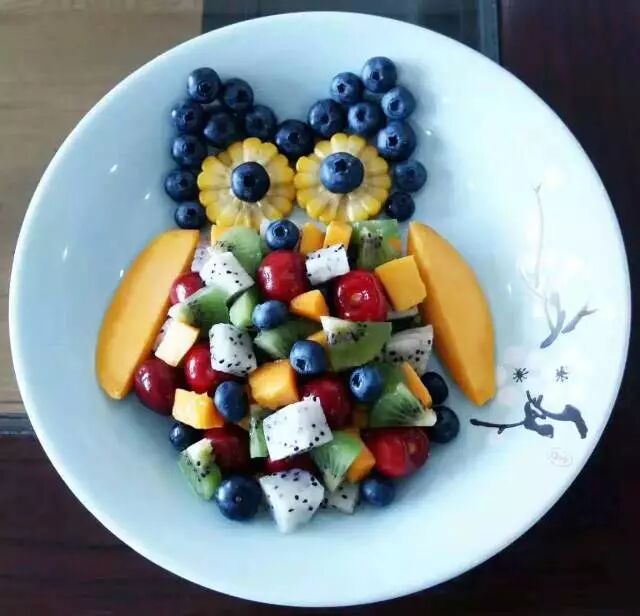 这是一只水果组成的猫头鹰!(等等,玉米也算水果吗?