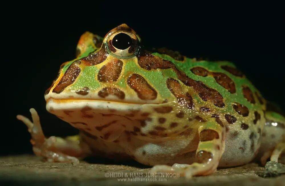 与绿角蛙、霸王角蛙相比,今日主角钟角蛙最直观的特点是花纹更为繁复缭乱,我们可以来张图对比一下。