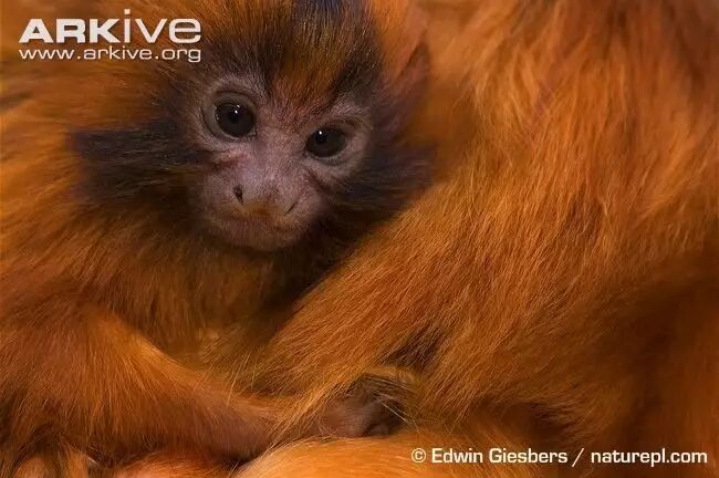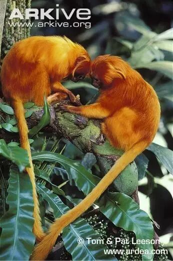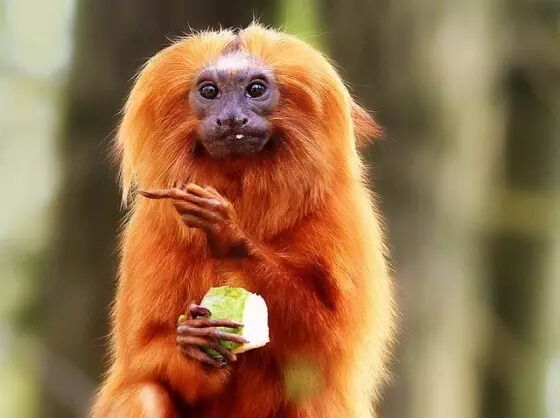 “狨鞍”的流行和栖息地破坏导致川金丝猴目前还是IUCN红色名单上的濒危物种。不过我们今天要说的不是这种“狨”,而是金丝猴远隔大洋的一种远亲——金狮面狨(Golden lion tamarin, Leontopithecus rosalia)。金狮面狨长啥样,我保证你看一眼就能记住。