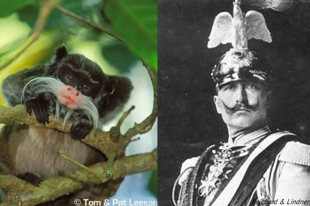 左右滑动。图1:皇狨猴(左)和德皇威廉二世(右);图2:普通狨和它在《里约大冒险》中的形象。图片来源见水印。