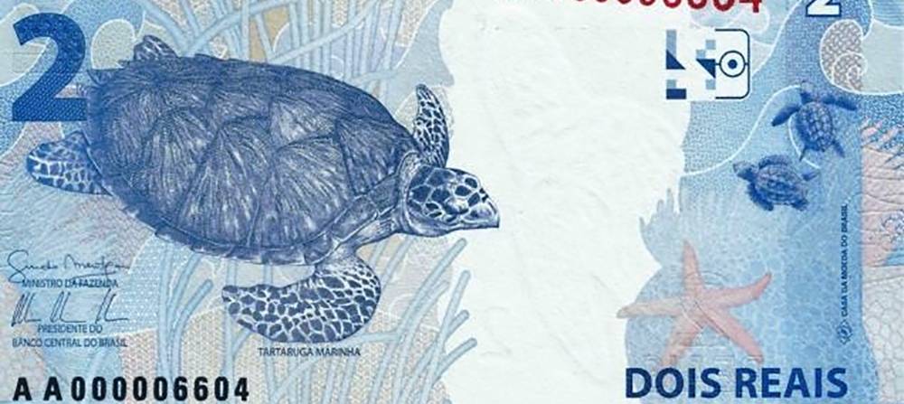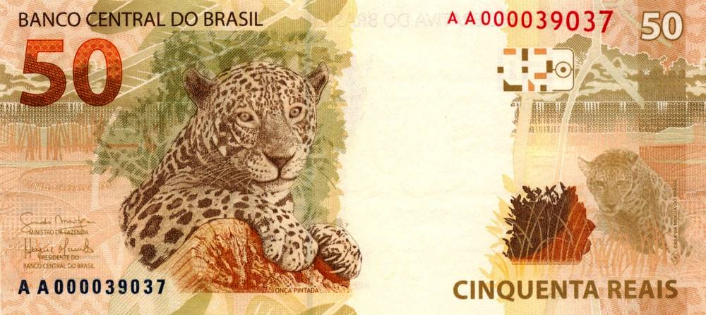 巴西2003年发行的20雷亚尔纸币背面就是金狮面狨,左右滑动看看这套纸币上的金刚鹦鹉、玳瑁海龟等其他珍稀物种吧。图片来源:wordpress.com