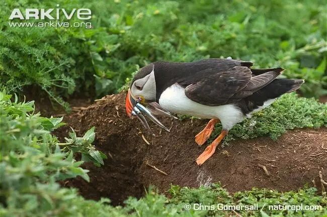 首先,喙是用来抓鱼的。海鹦以海里的小鱼小虾为食(主要是鱼,比如鲱鱼),宽大的喙能够装下好几条小鱼,用来哺育幼鸟、或者暂时储存一会儿再吃。