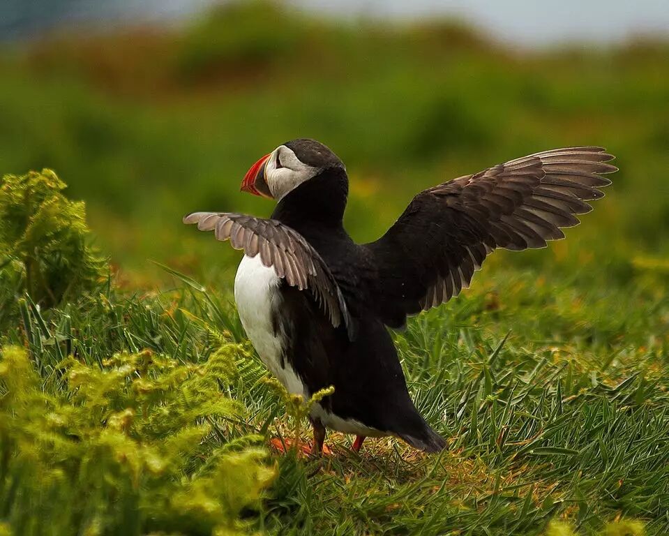 随着季节变换,春末夏初之际,岛上有了另外一个明艳的色彩在浮动,那是海鹦(Puffin)的喙。