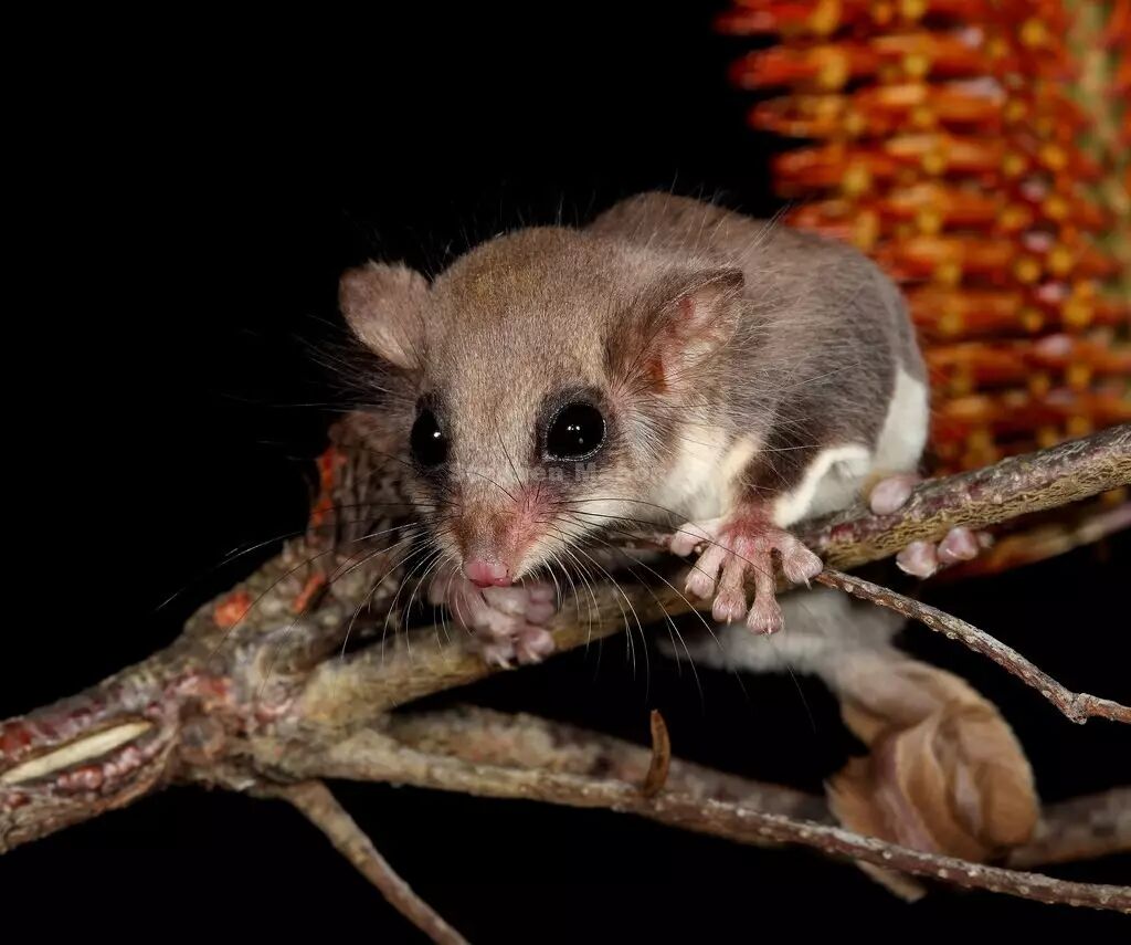 我们总是凭直觉认为大型哺乳动物就该拥有低沉的轰鸣嗓门,而小型哺乳动物就该发出吱吱的短促高音。比如树顶袋貂 (Acrobates pygmaeus),它是一种微小的有袋类动物,体重只相当于三茶匙糖,它也的确如你所料会发出吱吱声。